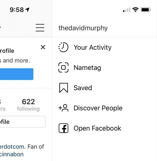 اپلیکیشن اینستاگرام را باز کنید و روی عکس حساب کاربری خود که در گوشه پایین و ست راست نمایشگر قرار دارد ضربه بزنید تا وارد پروفایل خود بشوید. در این صفحه روی سه خط زیر هم که در گوشه بالا سمت راست صفحه قرار دارد کلیک کنید و در صفحه باز شده، گزینه Your Activity که کنار آن علامت ساعت قرار دارد را انتخاب کنید.