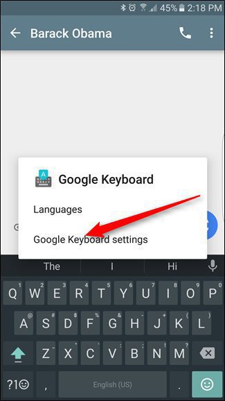 در صفحه کوچکی که باز میشود روی عبارت Google Keyboard settings کلیک کنید تا وارد صفحه تنظیمات شوید.