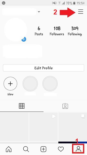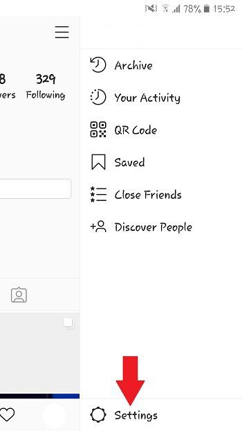 ابتدا باید وارد اینستاگرام خود شوید و وارد پروفایل خود شوید. یعنی روی عکس پروفایلتان که سمت راست و پایین صفحه است ضربه بزنید. سپس روی سه خط زیر هم بالا و سمت راست صفحه ضربه بزنید تا منوی کوچکی نمایش داده شود.