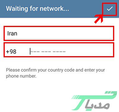 ۴- شماره تلفن همراه خود را وارد کنید سپس روی دکمه تیک که در بخش بالای آن قرار دارد کلیک کنید.