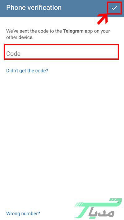۶- کدی که به شما پیامک شد را در باکس مربوط وارد کنید و بر دکمه تیک کلیک کنید.