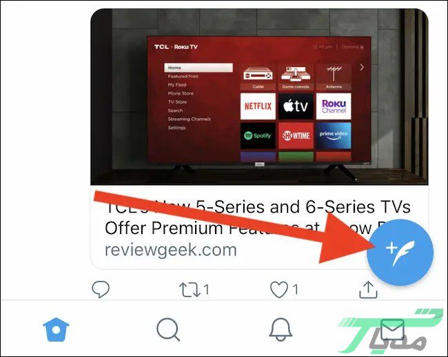 ۲- پس از آن نیز روی گزینه ایجاد توییت که در تصویر زیر نمایش داده شده است و در گوشه پایین سمت راست صفحه وجود دارد کلیک کنید.
