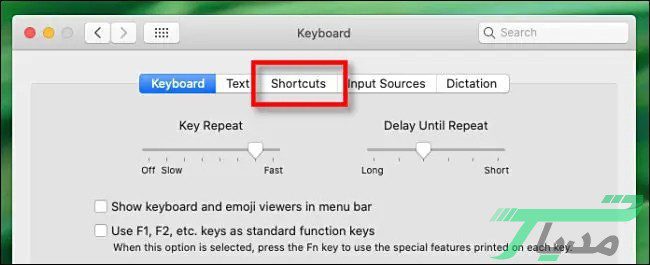 ۲- در مرحله دوم از منوی System Preferences روی گزینه Keyboard کلیک و پس از آن برگه Shortcuts را انتخاب کنید.