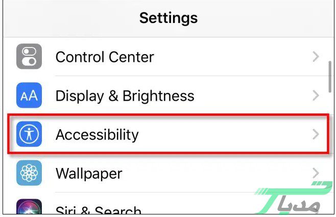 ۲- در قسمت تنظیمات روی گزینه Accessibility کلیک کنید.