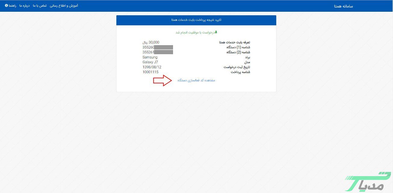 ۵- در حال حاضر اگر میخواهید کد فعالسازی دستگاه را مشاهده کنید روی گزینه مشاهده کد فعالسازی دستگاه کلیک کنید.