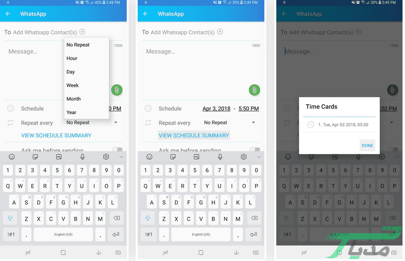 ارسال پیام زمان بندی شده در واتساپ