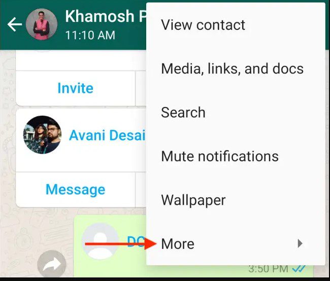۴- در این بخش روی گزینه Export Chat ضربه بزنید.