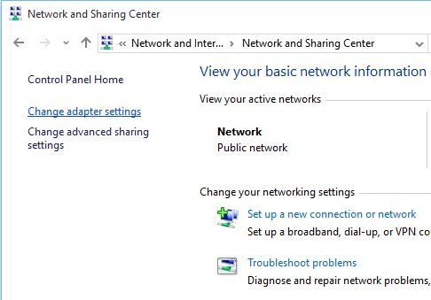 ۲- سپس پنجره‌ای روبه‌روی شما باز می‌شود ٰکه باید به بخش Change adapter settings بروید.