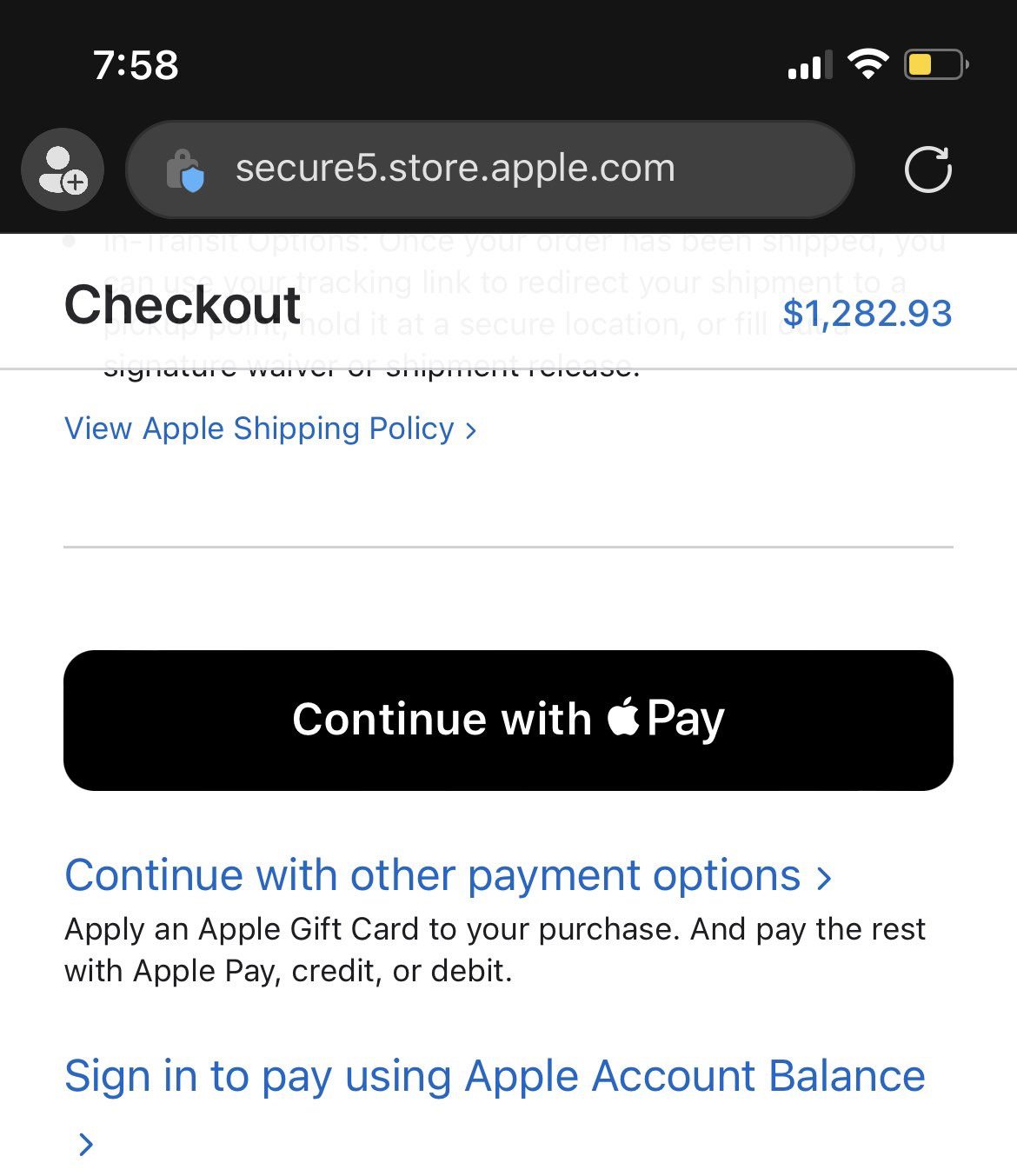 تصویر به اشتراک گذاشته شده نشان می‌دهد که گزینه Continue with Apple Pay در صفحه پرداختی که توسط مرورگر اج باز شده فعال شده است. در iOS 15 یا نسخه‌های قدیمی‌تر این سیستم‌عامل سرویس پرداخت اپل فقط در مرورگر سافاری پشتیبانی می‌شود و در صورت استفاده از مرورگری دیگر برای انجام خریدهای اینترنتی امکان پرداخت وجود نخواهد داشت.