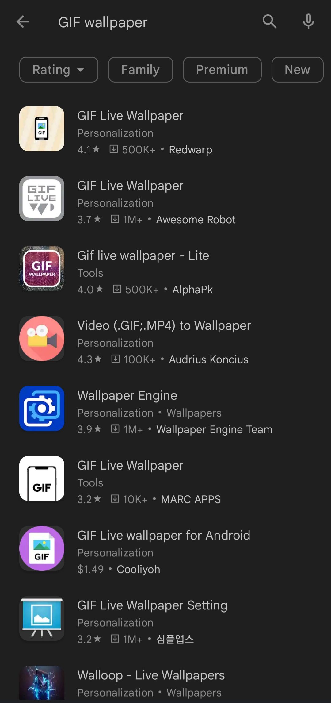 برای تنظیم والپیپر متحرک برای پس زمینه، باید اپلیکیشن مربوطه را دانلود کنید. اپلیکیشنهایی چون GIF Live Wallpaper یا LoopWall که در گوگل پلی در دسترس هستند، میتوانند پاسخگوی این نیاز برای کاربران باشند. البته با سرچ کردن GIF Live Wallpaper تعداد زیادی اپلیکیشن با این نام در گوگل پلی ظاهر خواهد شد که میتوانید از هر کدام از آنها استفاده کنید. نکتهای که راجع به اپلیکیشن LoopWall وجود دارد این است که نسخههای جدید اندروید از آن پشتیبانی نمیکنند؛ در نتیجه به توضیح نحوه استفاده از اپلیکیشن اول میپردازیم.