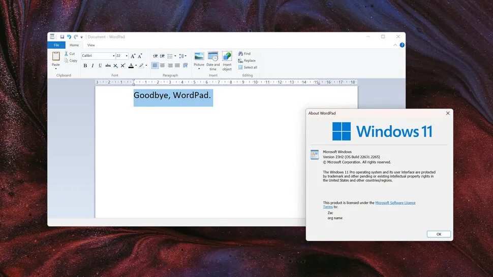 برنامه WordPad ویندوز حذف خواهد شد