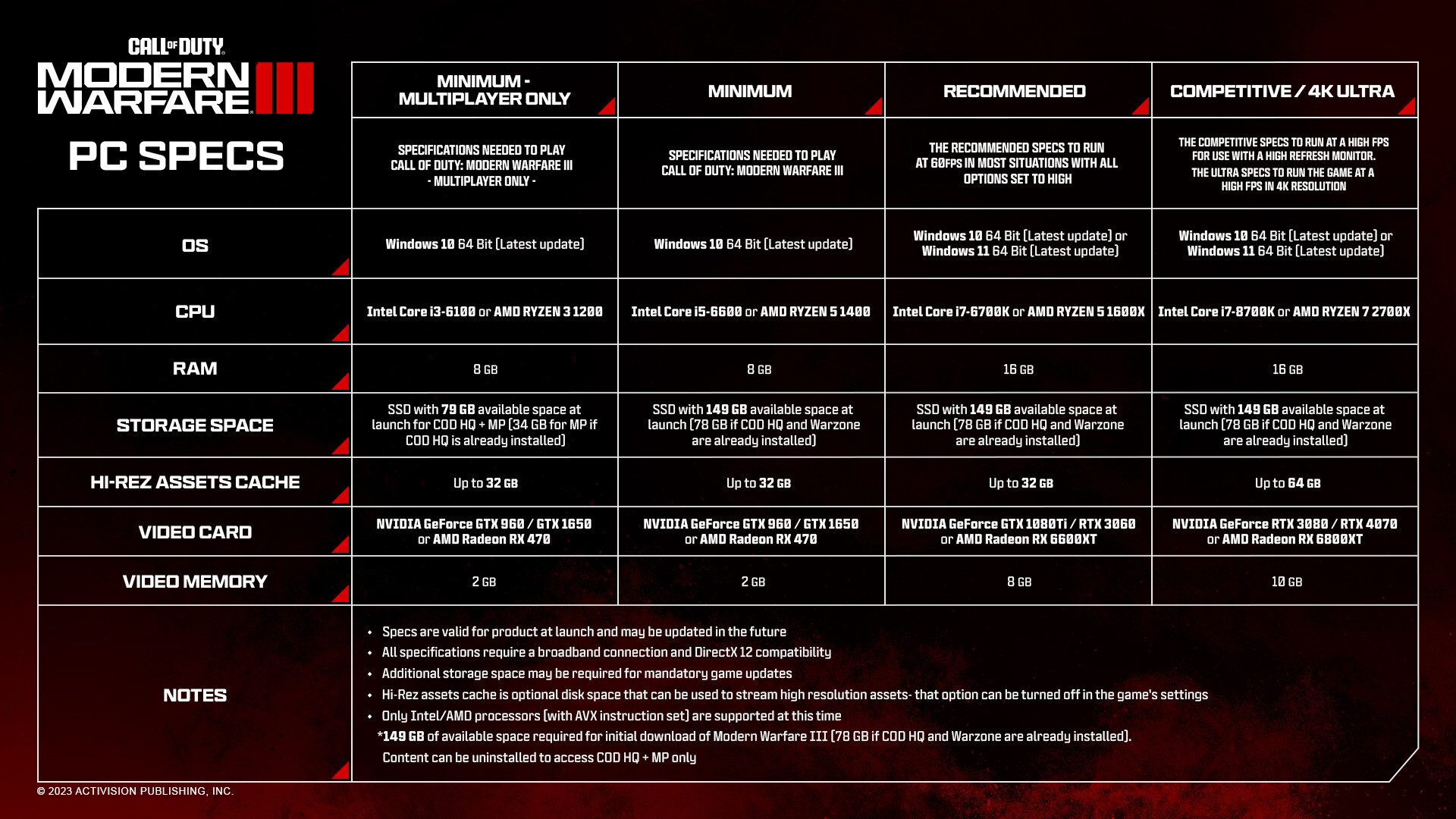 - Storage: SSD with 149 GB available space (78 GB if COD HQ and Warzone are already installed)