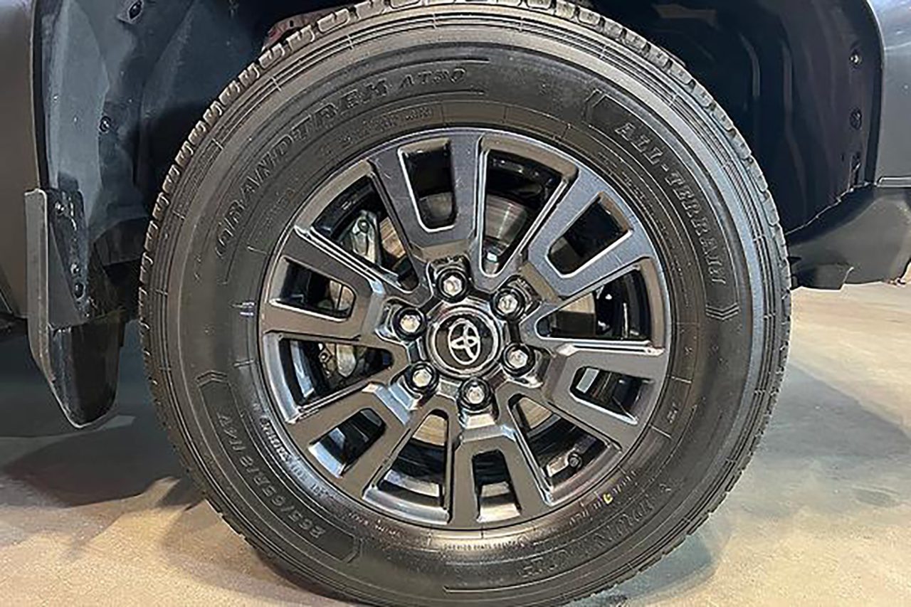 به نظر میرسد که روی تویوتا پرادو 250 2024، شاهد لاستیکهای یکسانی با لندکروزر سری 300 باشیم. این موضوع شاید موضوعی غیرمنتظره نباشد زیرا این دو خودرو از شاسی یکسان TNGA-F بهره میبرند. لاستیکهای موجود بر روی پروتوتایپ نمایشی، Dunlop Grandtrek در اندازه 265/65 R18 بودند همان سایزی که بر روی پادشاه جادهها میتوان مشاهده کرد.