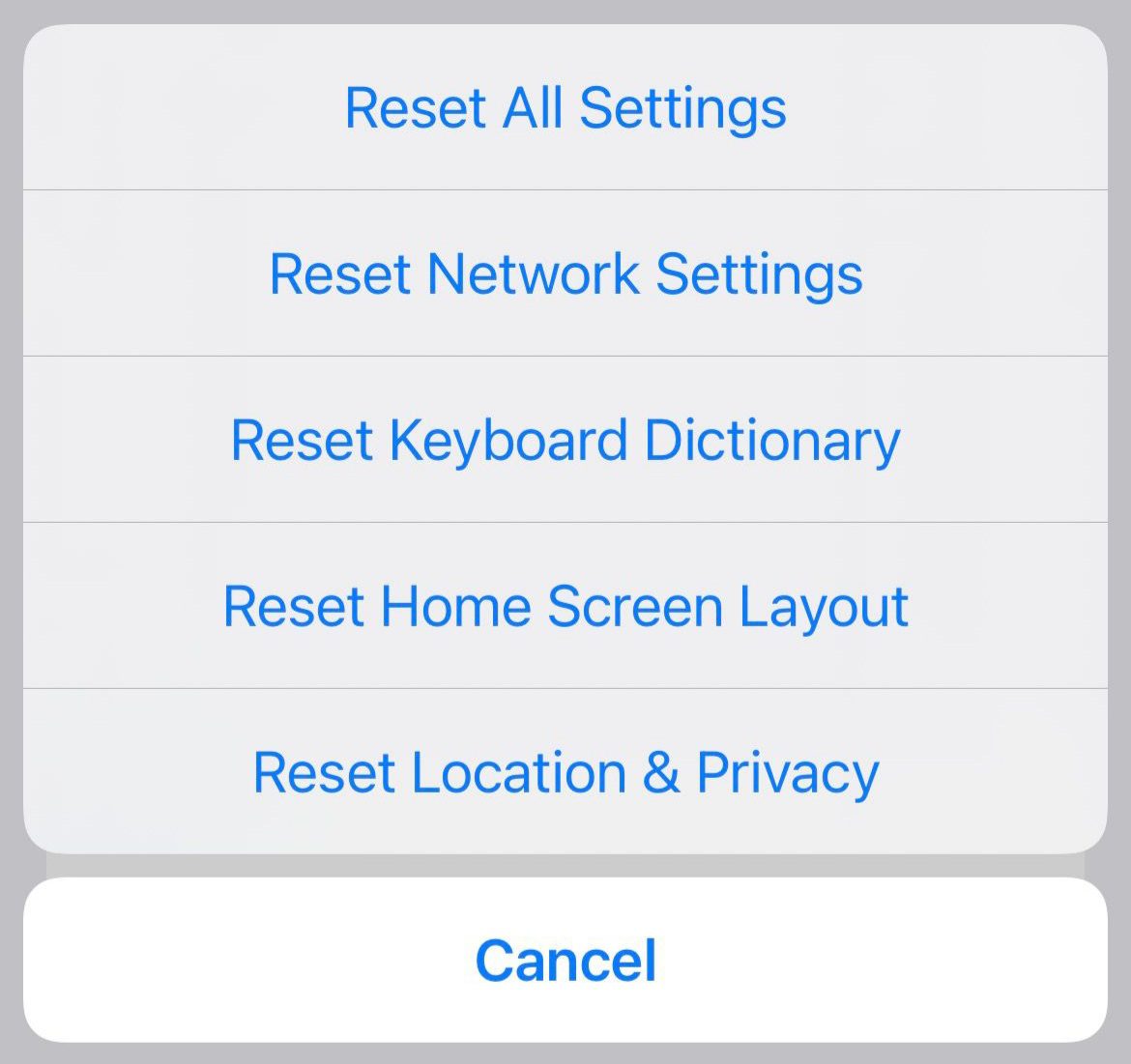 اگر همچنان می‌خواهید این روش را امتحان کنید، به Settings > General > Transfer or Reset [Device] > Reset بروید و روی بازنشانی تنظیمات شبکه ضربه بزنید. رمز عبور خود را وارد کنید، سپس تأیید کنید که می‌خواهید تنظیمات شبکه را بازنشانی کنید.