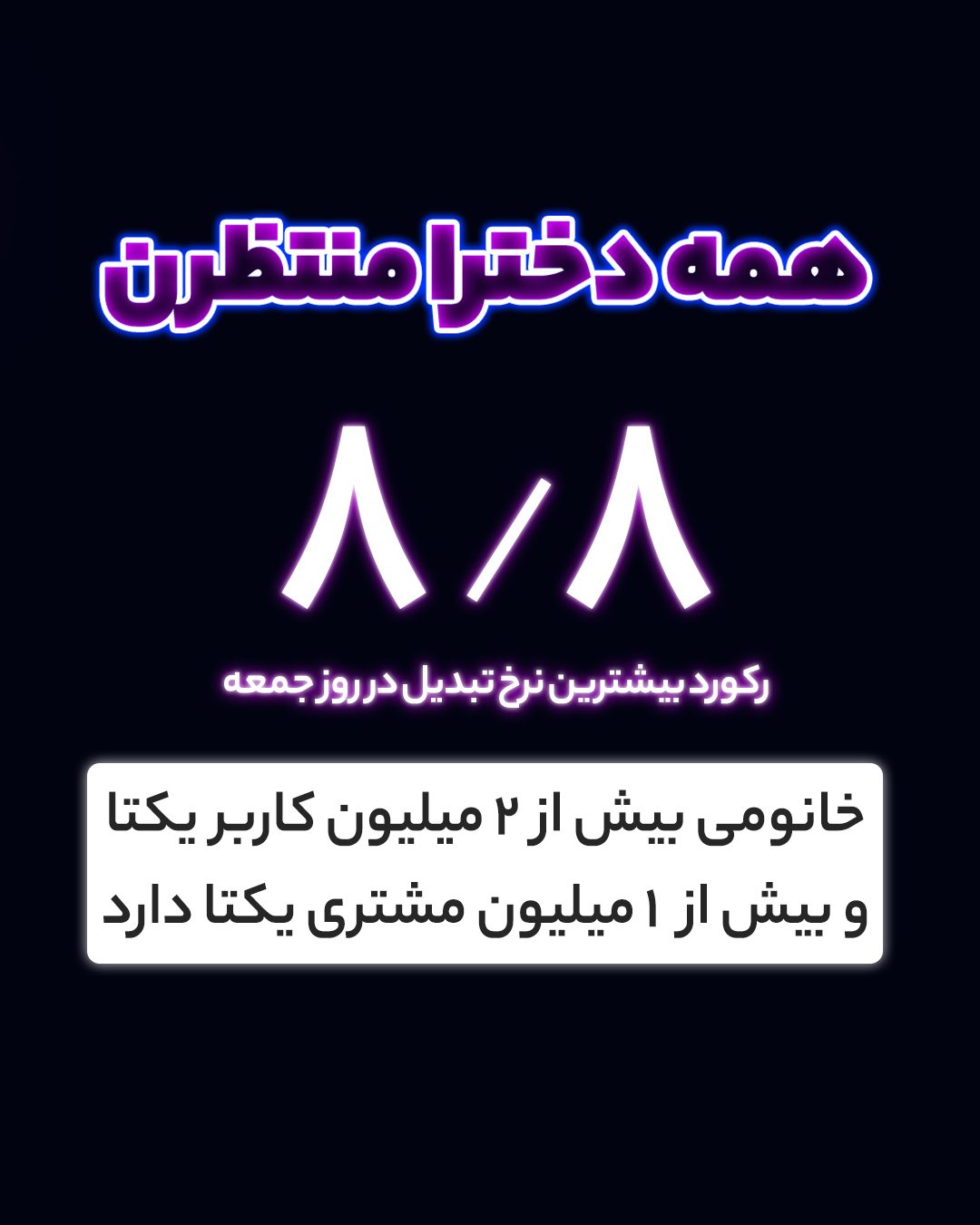 آمارهای تیم مارکتینگ و فروش خانومی حکایت از رکوردزنی نرخ تبدیل دارد. در روز جمعه بیشترین نرخ تبدیل برای این برند ایجاد شده که رکود آن با عدد 8.8 شکسته شده است. این عدد در کانال دایرکت به 13.7 رسیده است.