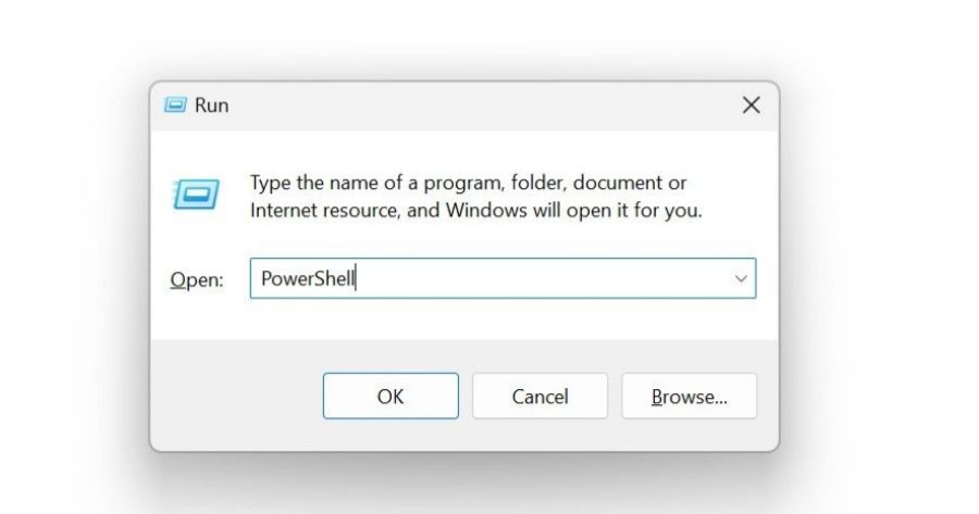 کلیدهای Win + R را به طور همزمان فشار دهید تا کادر گفتگوی Run باز شود. «PowerShell» را در کادر تایپ کنید و روی دکمه تأیید کلیک کنید.