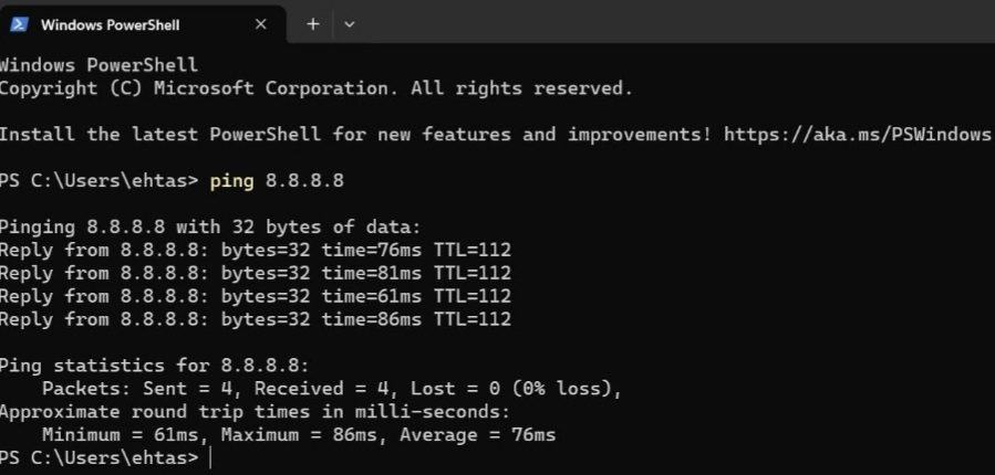 وضوح نام دامنه: فرمان ping میتواند به شما کمک کند یک نام دامنه را با ترجمه آن به آدرس IP مربوطه آن حل کنید. برای پیدا کردن آدرس IP مرتبط با یک دامنه خاص، “ping <domain name>” را در Command Prompt یا Windows PowerShell وارد کنید و Enter را فشار دهید.
