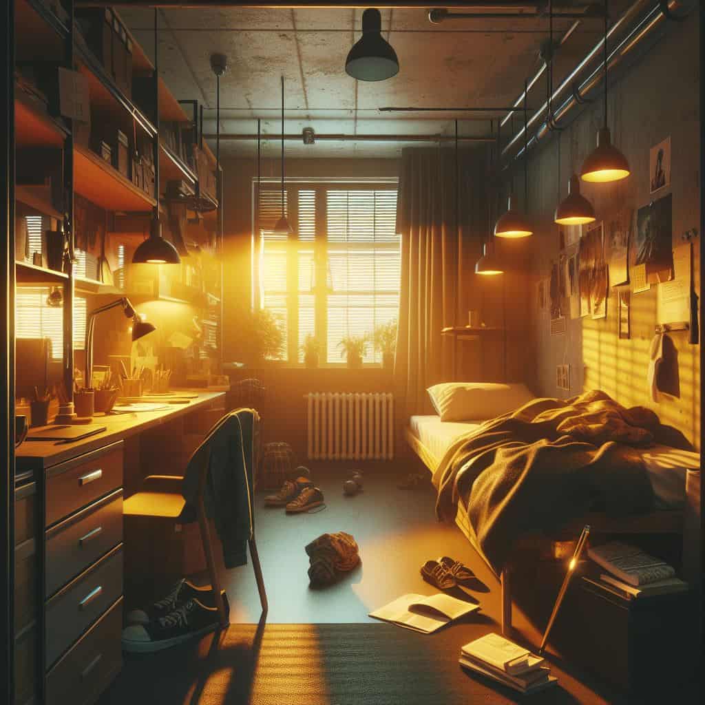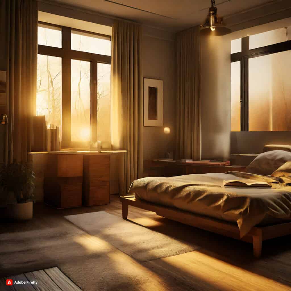 • موضوع: یک اتاق خواب پر سروصدای شهری با نور طلایی