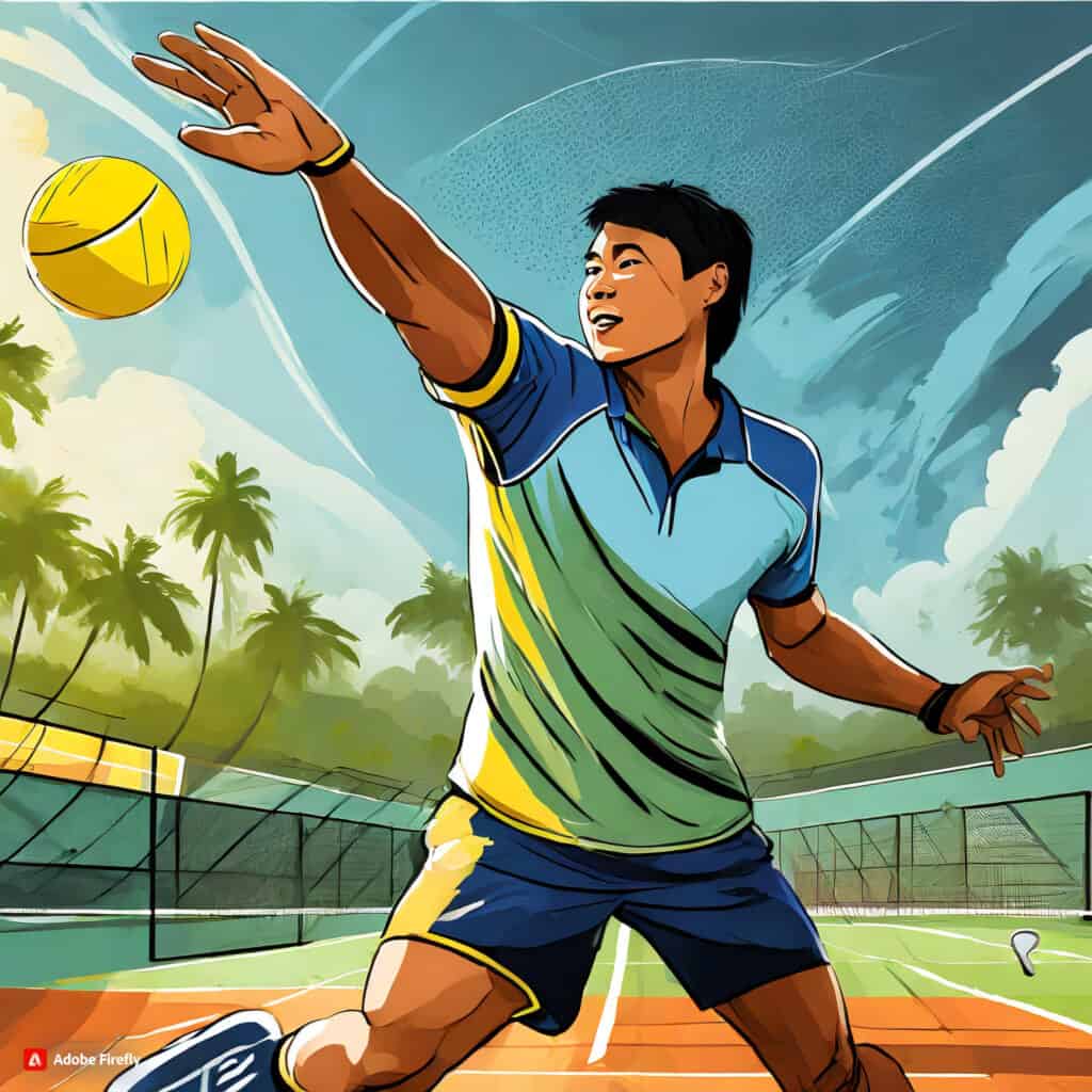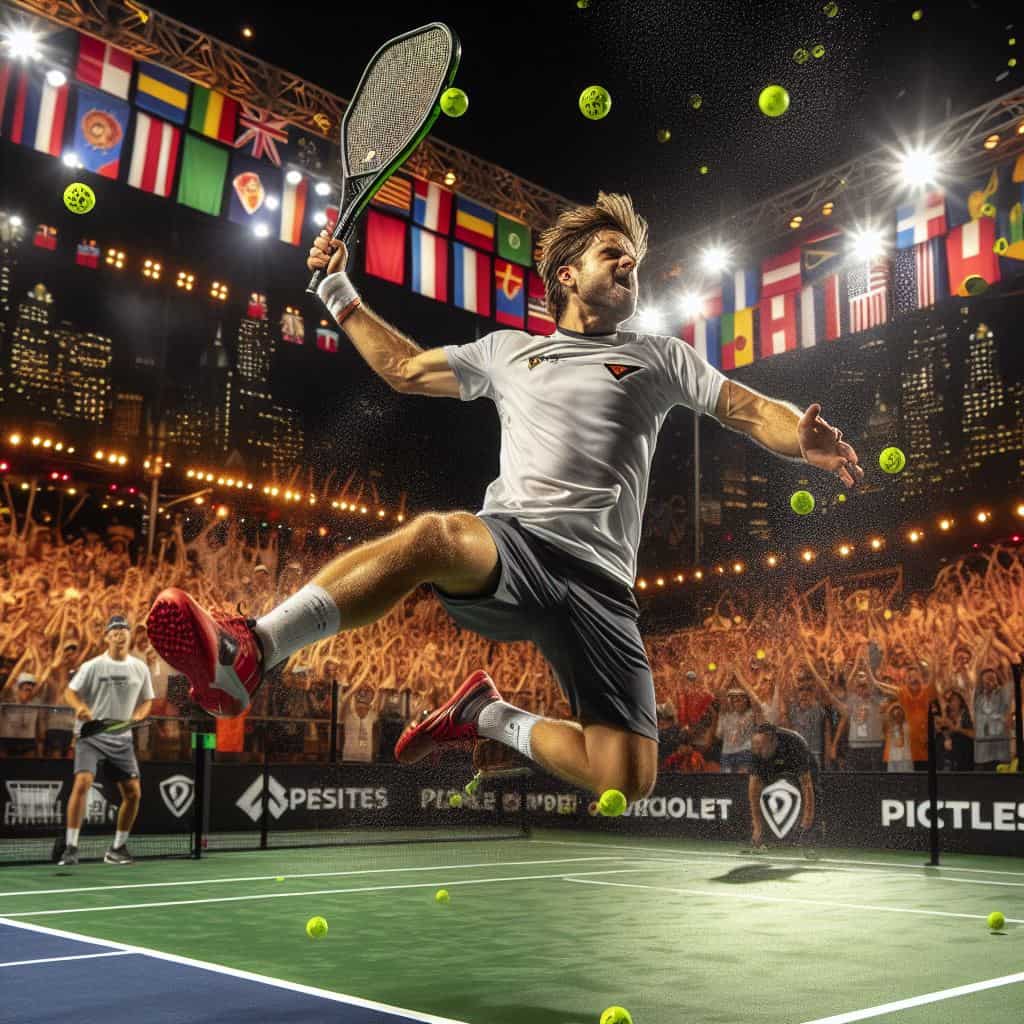 • موضوع: تصویری از یک بازیکن پیکلبال که گل می‌زند.