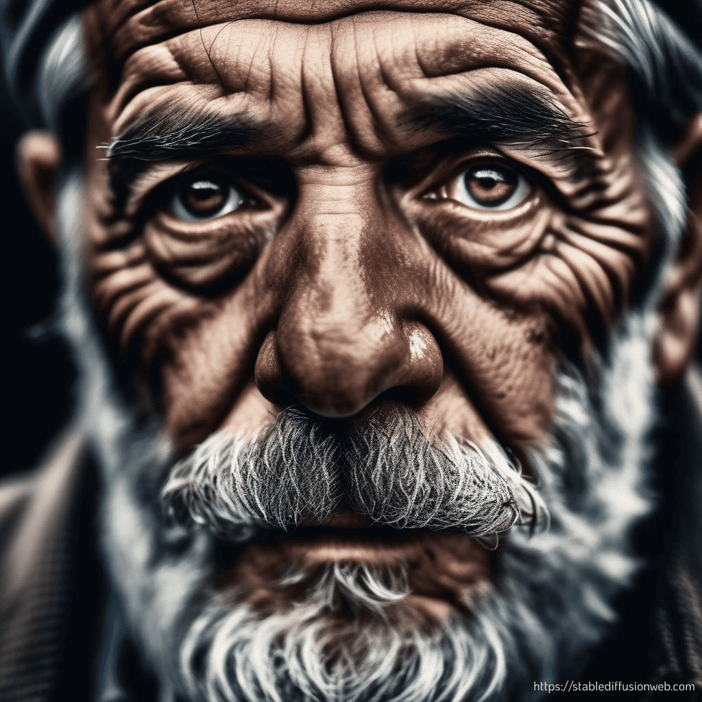 به جزئیات تصویر Midjourney نگاه کنید. وقتی بزرگنمایی کنید، می‌توانید تک تک تارهای مو، خطوط سنی و حتی انعکاس چشمان پیرمرد را ببینید.