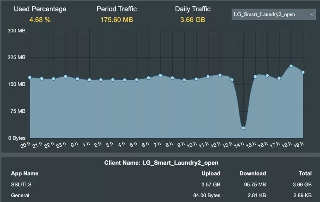به گزارش رسانه مدیاتی، به‌نظر می‌رسد برخی از لوازم خانگی هوشمند، مانند لباسشویی ال‌جی به‌طور غیرعادی مصرف اینترنت بالایی دارند. کاربری متوجه شده که ماشین لباسشویی او روزانه 3.66 گیگابایت اینترنت مصرف کرده است. او می‌گوید حالا مجبور شده دسترسی دستگاه به روتر را مسدود کند. هنوز علت دقیق این میزان مصرف داده‌ مشخص نشده است؛ اگرچه هک‌کردن دستگاه‌های هوشمند و سوءاستفاده از آن‌ها دور از ذهن نیست.