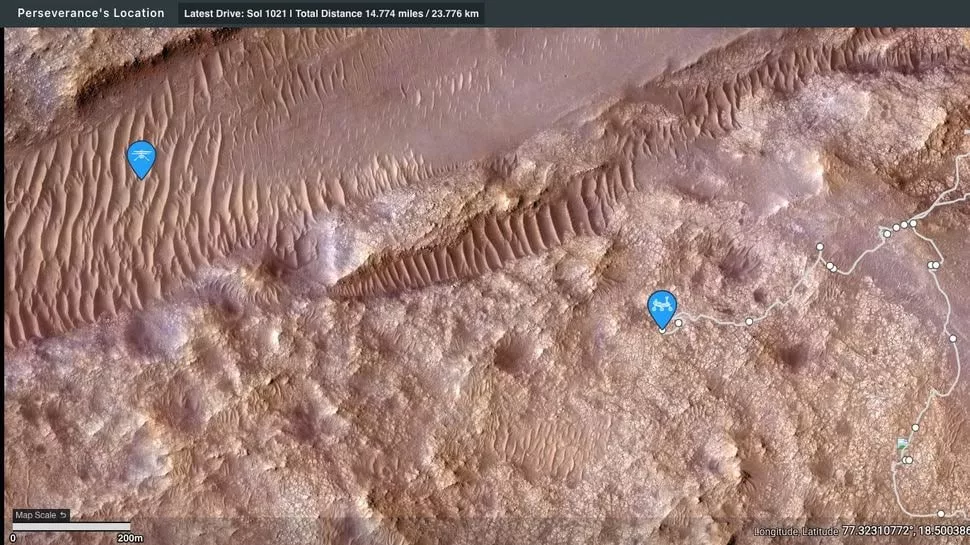 آزمایشگاه پیشرانش جت ناسا که مأموریت هر دو دستگاه را مدیریت میکند، در ایکس گفت: «استقامت اکنون از خط دید Ingenuity خارج شده است، اما تیم ما میتواند نزدیکشدن آنها به یکدیگر برای بازرسی بصری را درنظر بگیرد.»