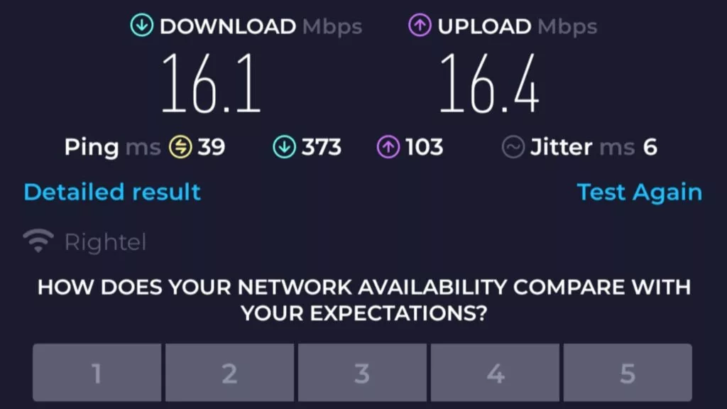 نوبت به تست سرعت اینترنت روی مودم نتربیت NW-431F میرسد. براساس گفتههای نتربیت، حداکثر سرعت دانلود و آپلود مودم 4G LTE آن بهترتیب به 150 و 50 مگابیت بر ثانیه میرسد. برای انجام تست سرعت روی این مودم از سیمکارتهای 4G رایتل و شاتل استفاده کردیم. به همین ترتیب در تستهای انجام شده، سرعت دانلود و آپلود اینترنت این مودم به 16 مگابیت بر ثانیه رسید. با این سرعت میتوانید بسیاری از کارهای روزمره خود را بدون مشکل انجام دهید. درصورتیکه از سیمکارت مخصوص TD/LTE با آنتندهی مناسب استفاده کنید، حتی میتوانید انتظار سرعت نزدیک به 30 مگابیت بر ثانیه و بالاتر را هم داشته باشید. استاندارد وایفای بهکار رفته در مودم NW-431F نتربیت توانایی ثبت حداکثر سرعت دانلود 300 مگابیت بر ثانیهای را هم دارد.