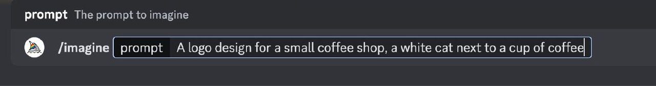 میتوانید با تایپ فرمان /imagine prompt در کادر متنی شروع کنید. در ابتدای کادر عبارت A logo design را بنویسید و برای مابقی جمله، ایده خود را جایگزین توضیحات کنید.