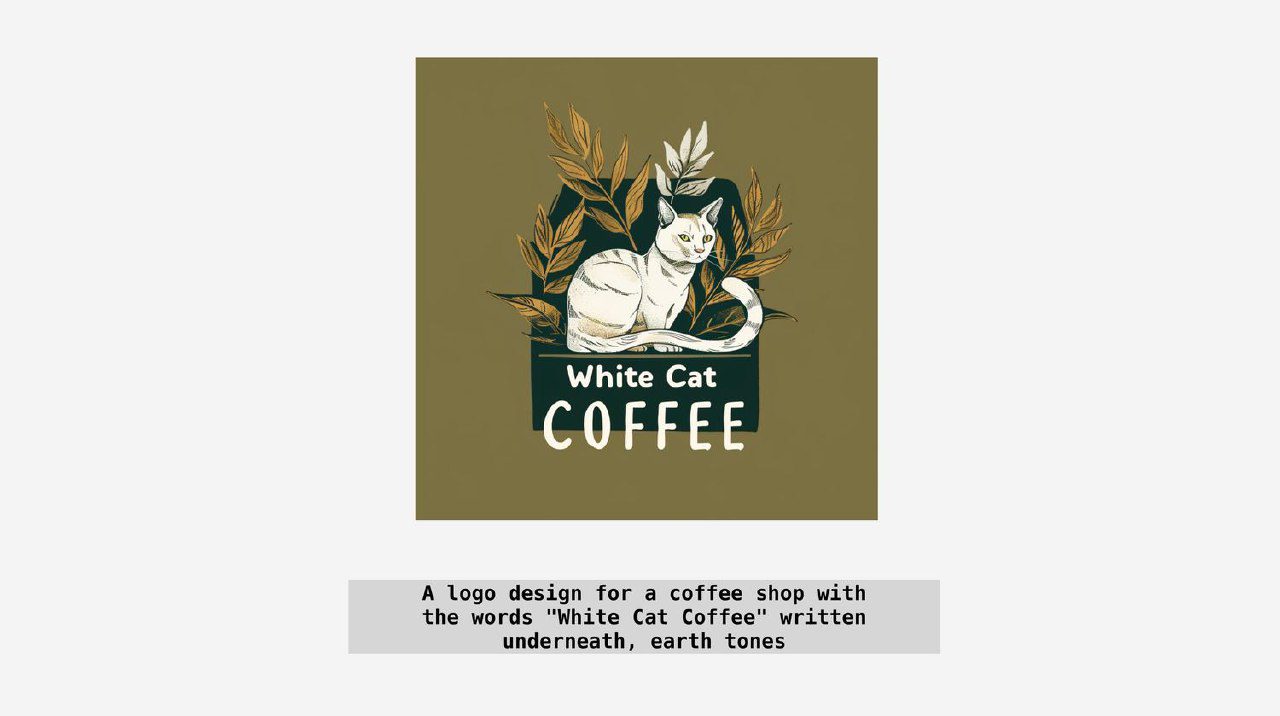 برای افزودن متن به تصویر خود، کلمه را در علامت نقل قول قرار دهید. برای مثال، طراحی لوگو برای یک کافیشاپ که زیر آن عبارت «White Cat Coffee» نوشته شده است.