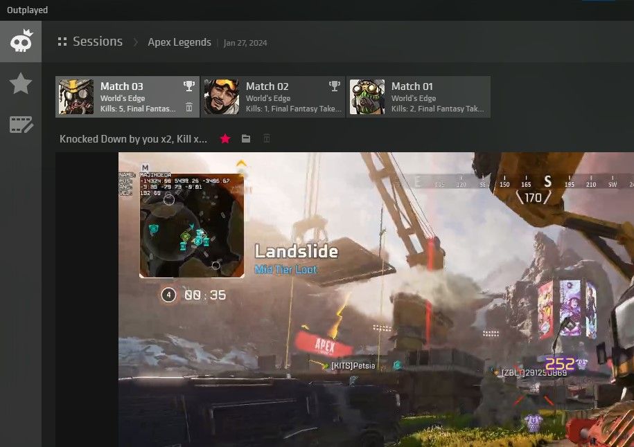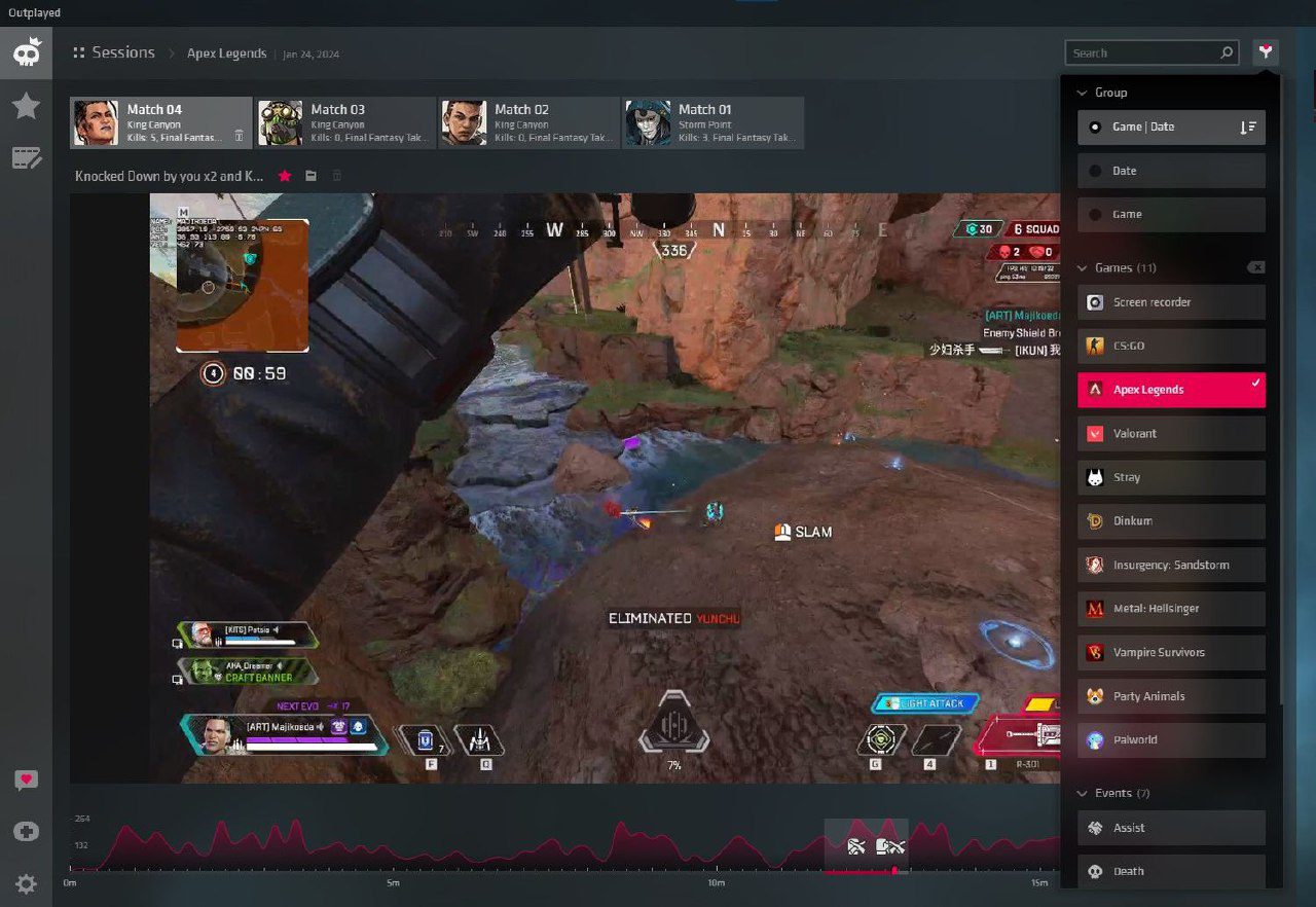 Outplayed می‌داند که آیا مسابقه جدیدی را شروع کرده‌اید یا خیر. این به این معنی است که کلیپ‌های شما به هم ریخته نمی‌شوند. در صورتی که به دنبال کلیپ قدیمی‌تر هستید، می‌توانید بر اساس بازی و تاریخ سرچ کنید.