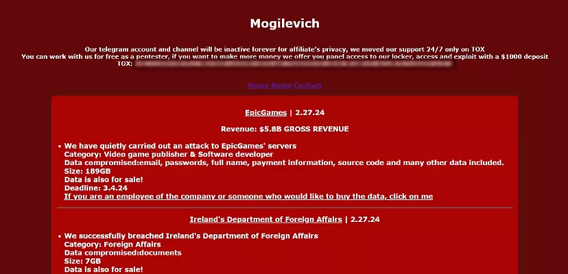 به گزارش وبسایت Cyber Daily، گروه هکری Mogilevich که در حوزه حملات باجافزاری تقریباً تازهوارد محسوب میشود، مدعی شده که اپیک گیمز را هک کرده است. این شرکت ساعاتی پیش جزئیات این هک را در وبسایت خود در دارکنت منتشر کرد.