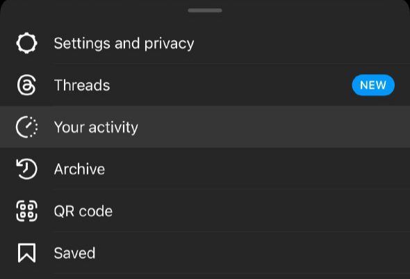 2. روی سه خط در گوشه بالا سمت راست ضربه بزنید و Your activity را از منوی بازشو انتخاب کنید.