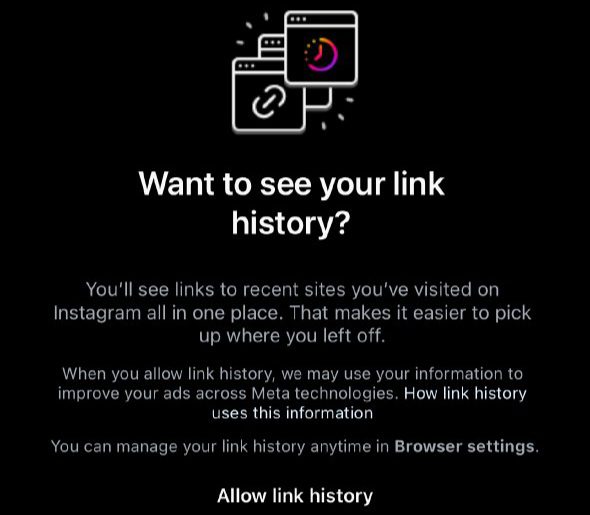 اینستاگرام برای ردیابی همه پیوندهایی که در برنامه روی آنها ضربه می‌زنید و بازدید می‌کنید به اجازه شما نیاز دارد. با این حال، ممکن است یک پنجره بازشو دریافت کرده باشید که از شما می‌خواهد ویژگی تاریخچه پیوند را هنگام استفاده از پلتفرم فعال کنید. بنابراین، ارزش بررسی را دارد تا ببینید آیا آن را قبلاً فعال کرده‌اید یا خیر.
