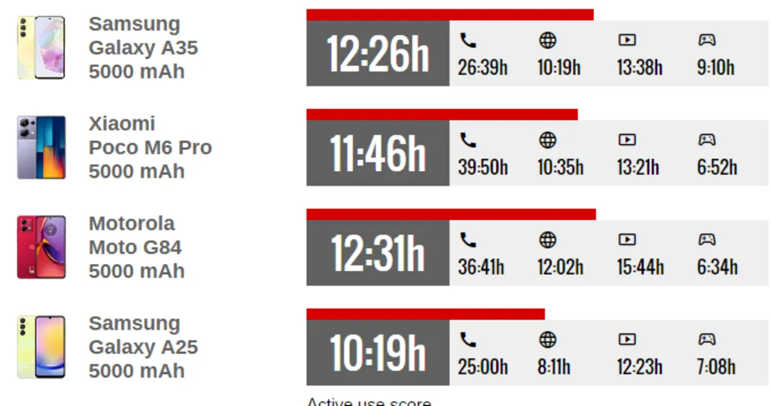 به گزارش رسانه مدیاتی، در تست باتری GSMArena، گوشی گلکسی A35 سامسونگ توانست بهطور میانگین 12 ساعت و 26 دقیقه شارژدهی داشته باشد. ظرفیت باتری این گوشی بدون تغییر نسبتبه نسل قبل، 5000 میلیآمپرساعت است.