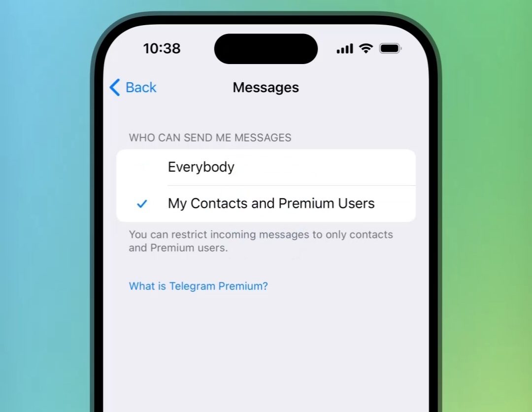با این بهروزرسانی، کاربران Premium میتوانند انتخاب کنند چه کسی میتواند برای آنها پیام ارسال کند؛ «Everyone» یا «My Contacts and Premium Users». وقتی گزینه دوم فعال باشد، کاربرانی که مخاطب نیستند یا Premium ندارند، نمیتوانند چت را با شما شروع کنند، اما اگر به آنها پیام دهید، میتوانند پاسخ دهند.