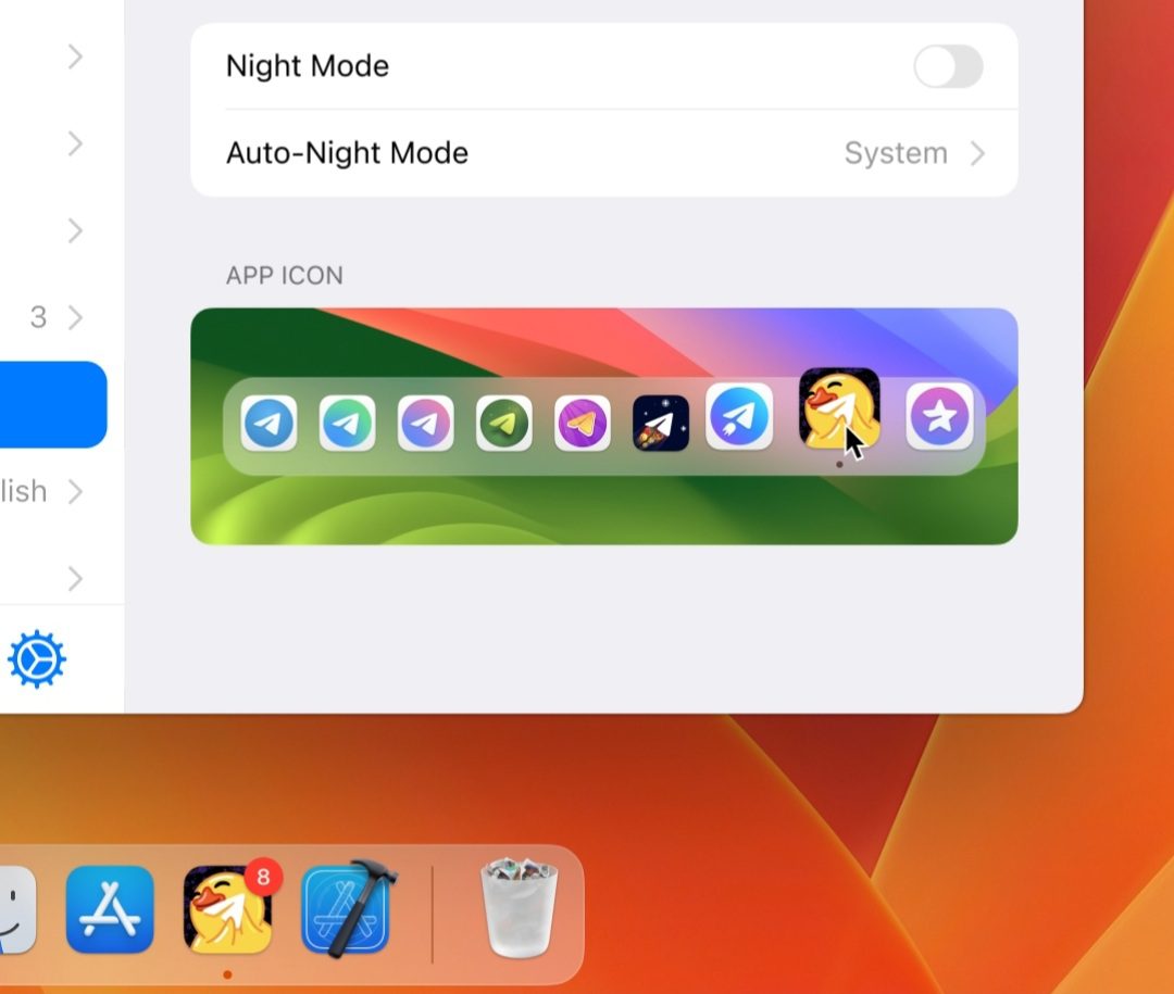 با نسخه مستقیم تلگرام برای macOS، اکنون میتوانید از بین 15 نماد انتخاب کنید تا برنامه، خود را با سلیقه شما مطابقت دهد. برای تغییر نماد برنامه، به Settings > Appearance > App Icon بروید.