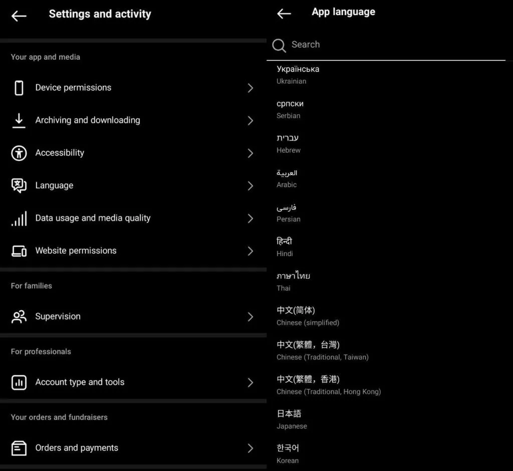 آموزش تغییر زبان اینستاگرام در گوشی و کامپیوتر