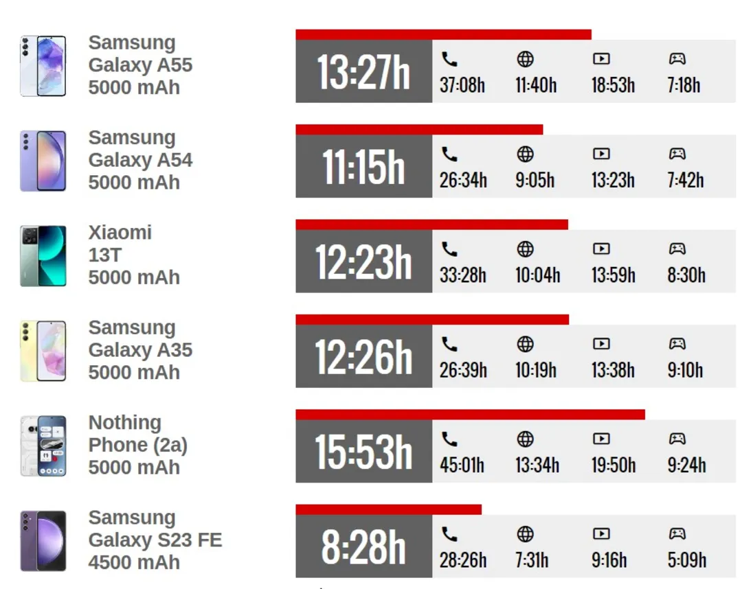 تست باتری گلکسی A55؛ بسیار بهتر از S23 FE، ضعیف‌تر از ناتینگ فون 2a