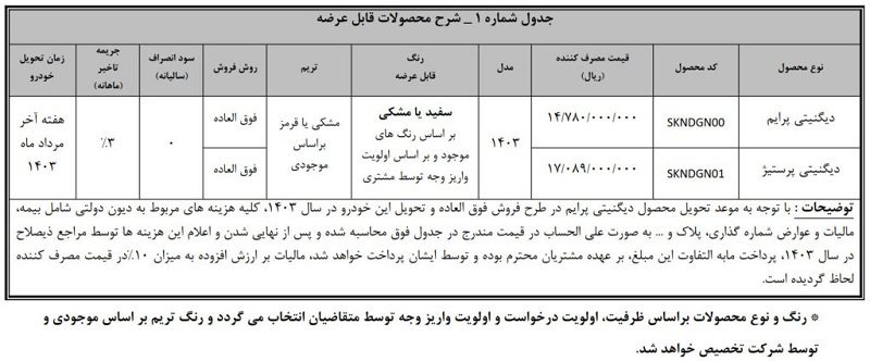 این فروش تا  ساعت 24 روز دوشنبه مورخ 1403/1/20 ادامه داشت. در ادامه شرایط فروش و جزئیات خرید خودروها آورده شده است.