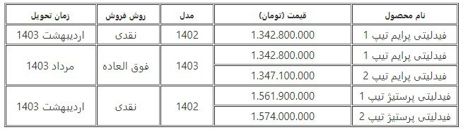 فروش خودروهای فیدلیتی