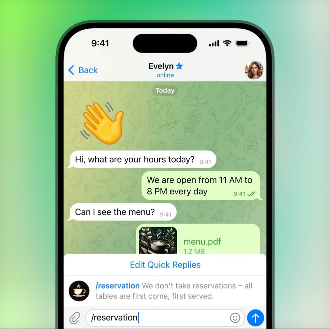 تلگرام مدتهاست که به توسعهدهندگان اجازه میدهد تا رباتها و برنامههای کوچک قدرتمندی بسازند که به طور گسترده توسط مشاغل مورد استفاده قرار میگرفت. از امروز، هر کاربری میتواند به راحتی از ویژگیهای تجاری استفاده کند.