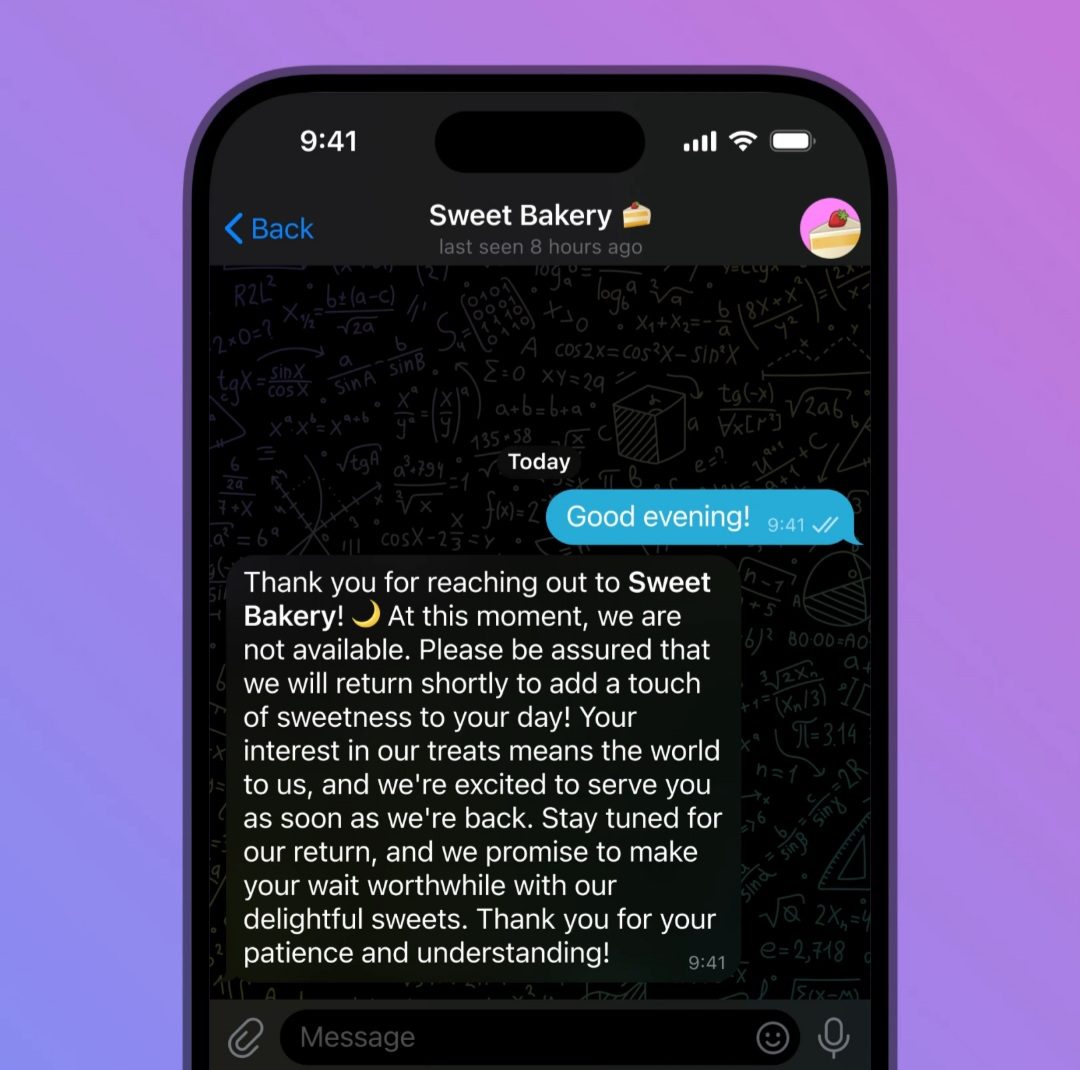 همچنین میتوانید یک پیام دور از دسترس را تنظیم کنید تا زمانی که کسب و کار شما بسته است یا در تعطیلات هستید ارسال شود.