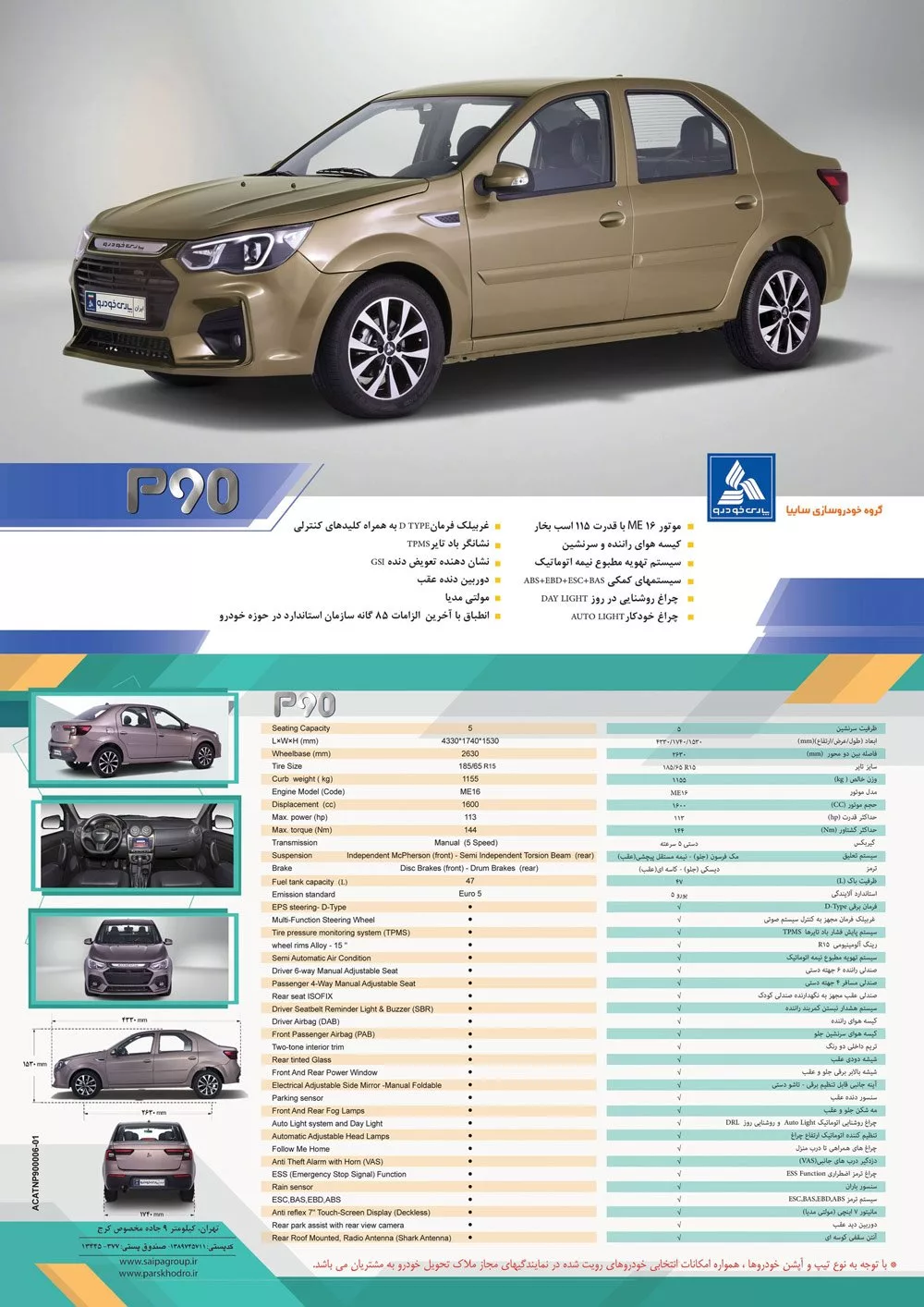 همانطور که انتظار داشتیم، پیشرانه 1.6 لیتری ME16 سایپا زیر کاپوت ال 90 ایرانیزه یا همان پی 90 قرار دارد. این پیشرانه همتای موتور ایرانخودرو موسوم به TU5 پلاس است که طرحهای آن براساس همکاری بین سایپا و سیتروئن در دسترس طرف ایرانی قرار گرفتهاند. حداکثر راندمان پیشرانه ME16 برابر با 113 اسببخار قدرت و 144 نیوتنمتر گشتاور اعلام شده است. نسخه اولیه پی 90 پارس خودرو به گیربکس پنج سرعته دستی مجهز خواهد بود اما امکان عرضه آن با گیربکس اتوماتیک در آینده وجود دارد.