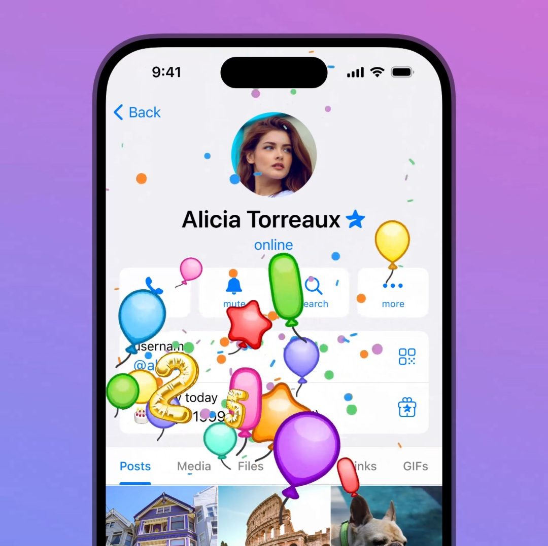 در این بروزرسانی، هر کسی میتواند تاریخ تولدش را به نمایه خود اضافه کند. به این صورت همه مخاطبین شما متوجه روز تولد شما خواهند شد. در روز تولد شما، هر کسی که از نمایه شما بازدید کند با کانفتیهای متحرک و بادکنکهای فراوان روبرو میشود. هنگامی که تولد شخص دیگری است، یک بنر در لیست چت شما ظاهر میشود، بنابراین فراموش نمیکنید که به آنها تبریک بگویید.