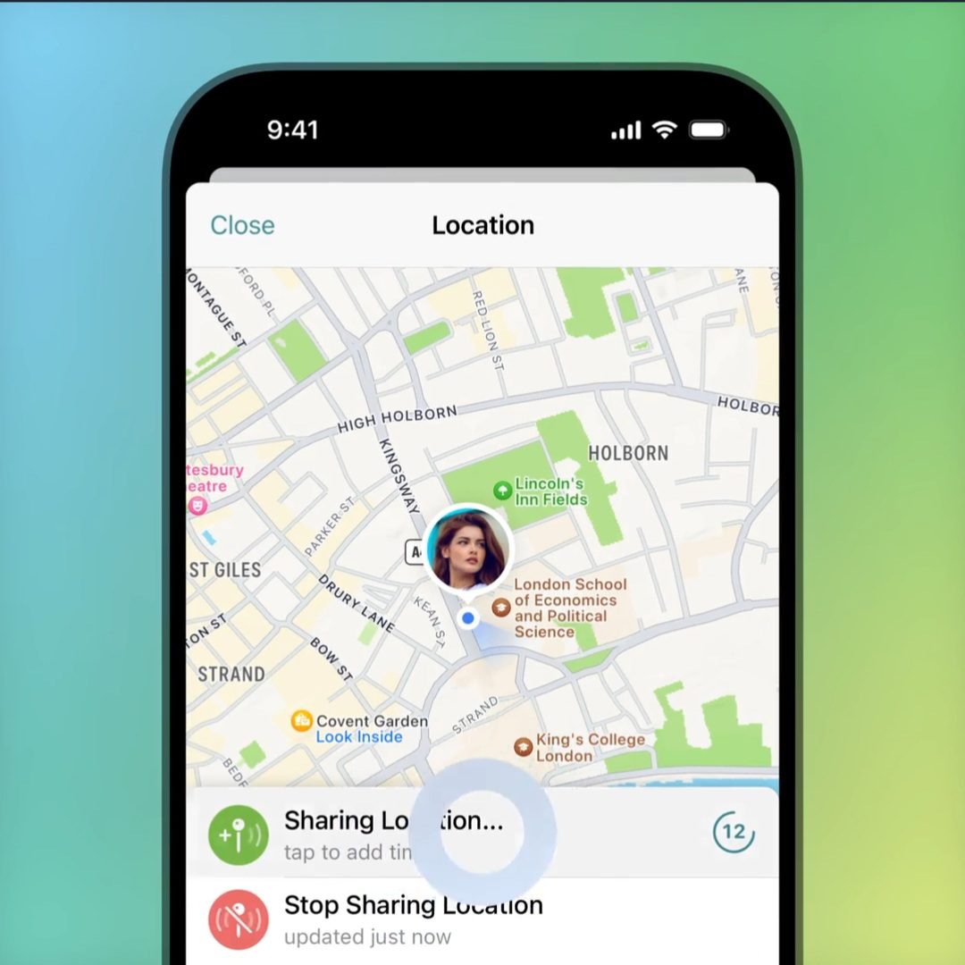 هنگام ملاقات با دوستان یا سفر، میتوانید مکان لایو خود را با کاربران فردی یا کل چتهای گروهی به اشتراک بگذارید. این ویژگی به دیگران امکان میدهد سفر شما را دنبال کنند.