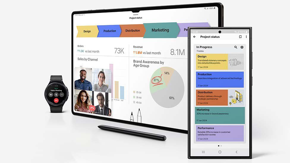 این امکان به صورت بیسیم با هر نمایشگر دارای Miracast از جمله طیف جدید مانیتورهای هوشمند سامسونگ کار میکند. همچنین امکان مشاهده ارائههای شما در ابعادی بزرگتر روی بیشتر تلویزیونهای هوشمند جدید نیز وجود دارد. فرقی ندارد که در حال نهایی کردن یک قرارداد کاری هستید یا ارائه پیشنهادی به مشتریان خود، با وجود این امکان میتوانید تمامی کارهایتان را با گوشیهای سری S24 خود و به کمک محاسبات کامپیوتری مبتنی بر موبایل انجام دهید. در نهایت نیز به لطف سرویس امنیتی Samsung Knox، شما و کسبوکارتان همواره ایمن و مطمئن باقی میمانید.
