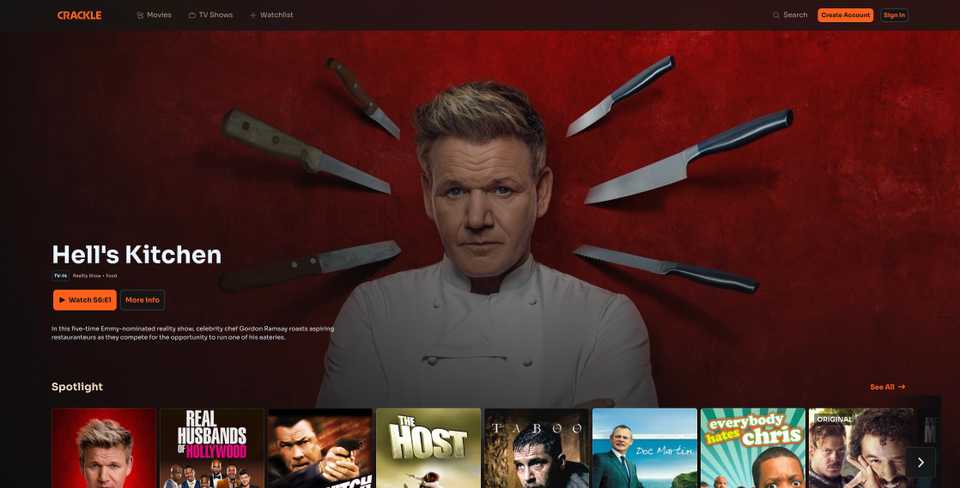 Crackle یکی از بهترین سایت‌های پخش آنلاین رایگان فیلم است. این برنامه از شما نمی‌خواهد که در آن ثبت نام کنید و این واقعیت که Sony Pictures مالک آن است به سایت اعتبار می‌بخشد.