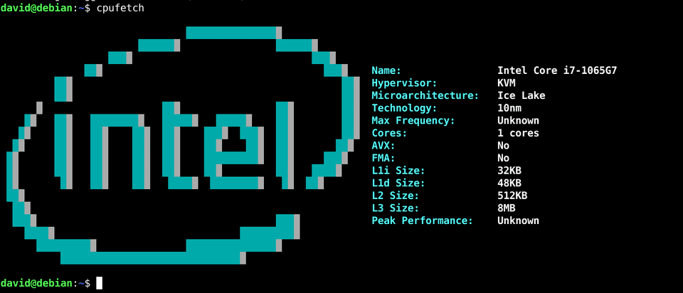 cpufetch شبیه Neofetch است، اما به جای لوگوی توزیع، لوگوی سازنده CPU شما را نمایش میدهد.