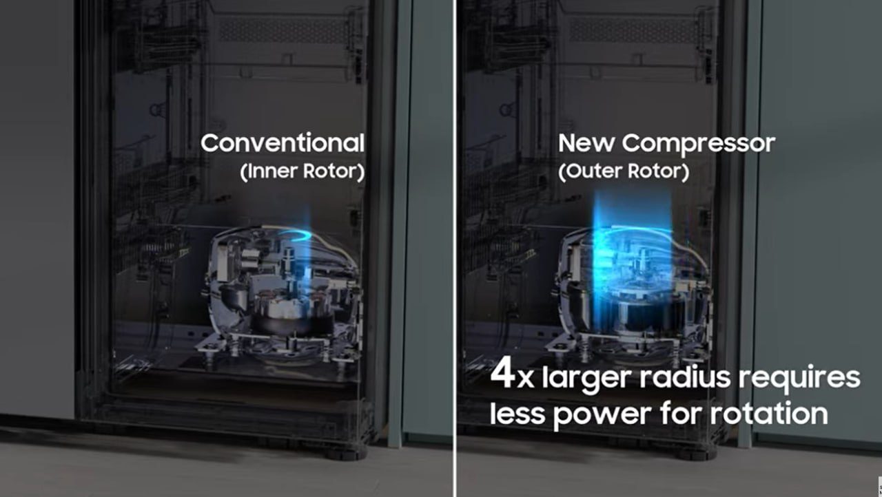 کمپرسورهای جدید ارتقا یافته، نقطه اوج نوآوریهای مداوم سامسونگ هستند که از نسل اول در سال 1997 تا نسل هشتم کنونی ادامه داشته است. این شرکت به منظور افزایش بهرهوری انرژی و دوام بیشتر کمپرسورهای خود، به طور پیوسته در حال تحقیق، توسعه و بهبود فرآیند تولید موتور داخلی، بلبرینگها، پیستونها، سوپاپها و سایر اجزا و قطعات بوده است. در نتیجه، کمپرسورهای مجهز به هوش مصنوعی توانستهاند به بازدهی موتور داخلی بیشتر از 95درصد دست پیدا کنند که سطح قابل قبولی در صنعت لوازم خانگی به حساب میآید.