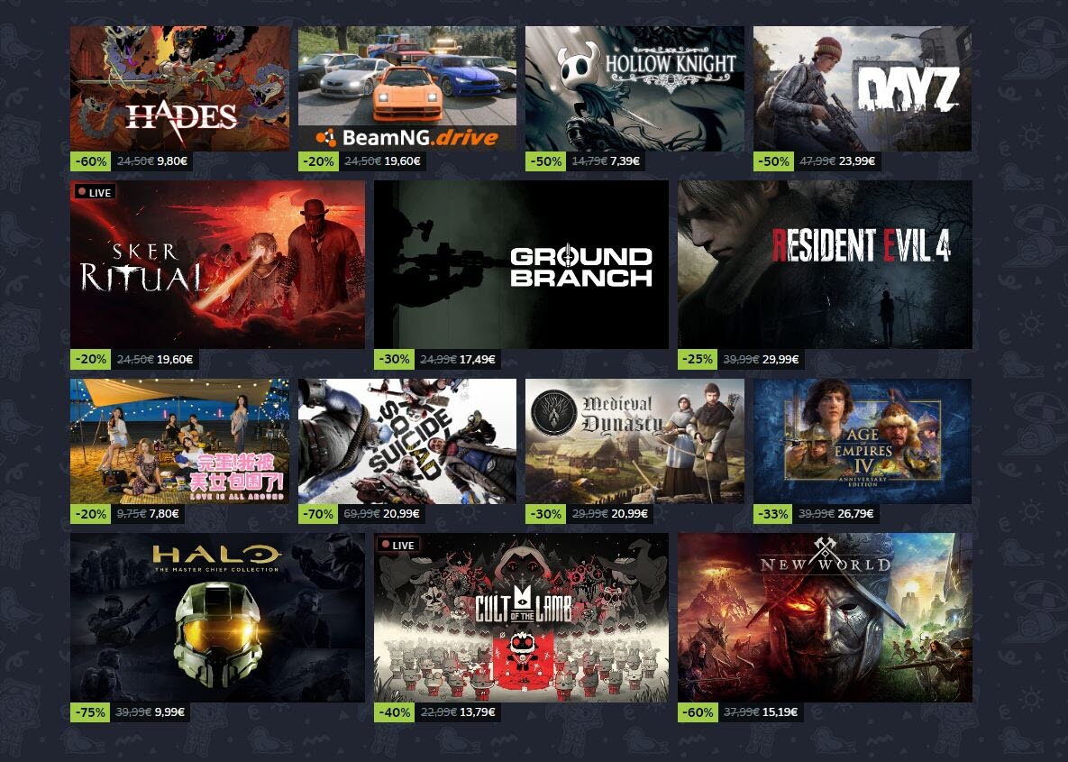 ما یک گشت کوتاه در استیم زدیم و لیستی از برخی از عناوینی که جلب توجه کردند، تهیه کردیم، هر چند که تعداد بازیهای تخفیف خورده بسیار زیاد است و ممکن است بسیاری از عناوین جذاب دیگر در این لیست قرار نگرفته باشند. در مورد تخفیف استیم دکها نیز، باید گفت که مدلهای 64 و 512 گیگ LCD دار در این فروش ویژه به میزان 15 درصد تخفیف خوردهاند.